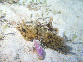 Strong Easterly winds again this week but hey, no rain (or snow). Lots of baby squid are hatching in the front yard. The Eagle Rays are making frequent visits in the shallows - you don't even have to get wet to see them!