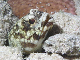 Banded Jawfish peeking out of his hole.