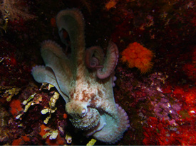Octopus out hunting during the night.